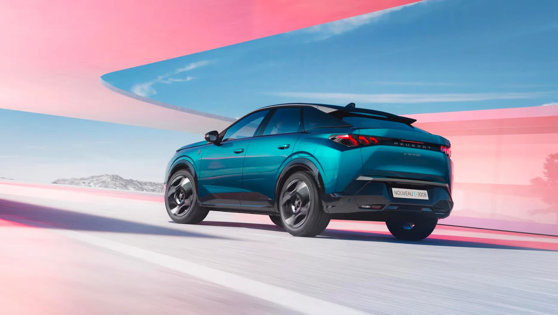 Le nouveau E-3008 entre dans une nouvelle ère. Avec sa ligne de SUV Fastback, sa nouvelle face avant high-tech ornée de projecteurs ultra-fins PEUGEOT PIXEL LED et sa face arrière au design dynamique avec becquet flottant, ce SUV illustre la métamorphose de PEUGEOT.